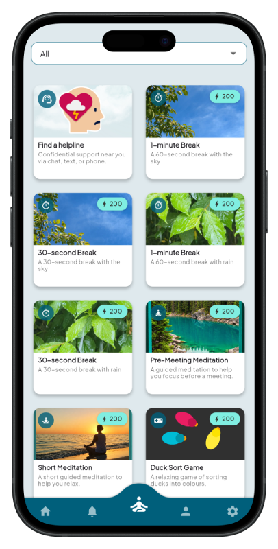 Access a curated library of proven mindfulness techniques whenever you need them, with personalised recommendations.