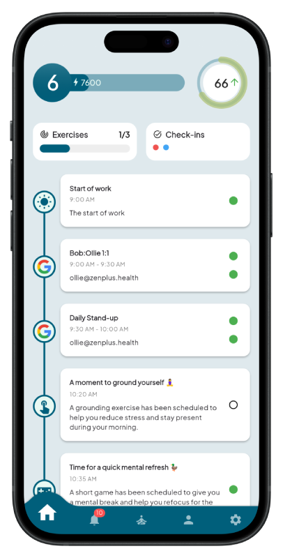 Automatically sync your work calendar so Zen+ understands your schedule and tailors mindfulness prompts.